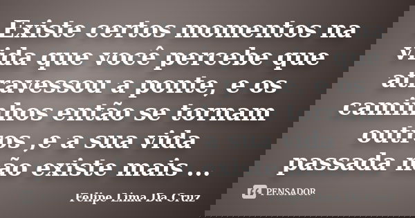 Existe certos momentos na vida que você percebe que atravessou a ponte, e os caminhos então se tornam outros ,e a sua vida passada não existe mais ...