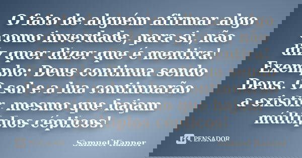 O fato de alguém afirmar algo como inverdade, para si, não diz quer dizer que é mentira! Exemplo: Deus continua sendo Deus. O sol e a lua continuarão a existir, mesmo que hajam múltiplos cépticos!