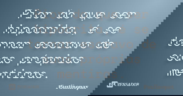 Pior do que ser hipócrita, é se tornar escravo de suas próprias mentiras.