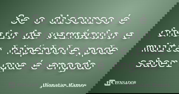 Se o discurso é cheio de vernáculo e muita hipérbole,pode saber que é engodo