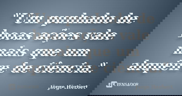 "Um punhado de boas ações vale mais que um alqueire de ciência."