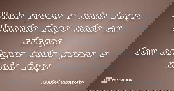 Tudo posso e nada faço. Quando faço nado em afagos Com afagos tudo posso e nada faço
