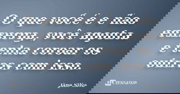O que você é e não enxerga, você aponta e tenta coroar os outros com isso.