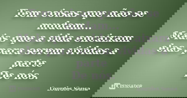 Tem coisas que não se mudam... Mais que a vida encaixam elas para serem vividas a parte De nós.
