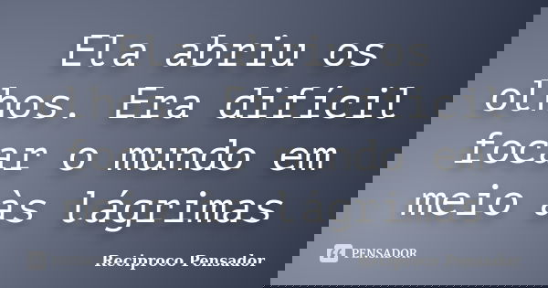 Ela abriu os olhos. Era difícil focar o mundo em meio às lágrimas