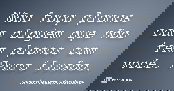 Não faça planos com alguém que não tem planos com você. Pura ilusão.