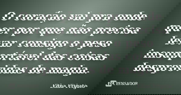 O coração vai pra onde quer por que não precisa levar consigo o peso insuportável das coisas desprovidas de magia.