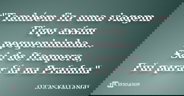 "Também fiz uma viagem Tipo assim pequenininha.. Sai de Itaquera, Fui parar lá na Prainha"
