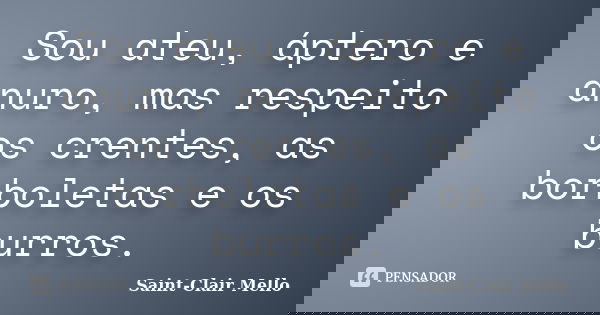 Sou ateu, áptero e anuro, mas respeito os crentes, as borboletas e os burros.