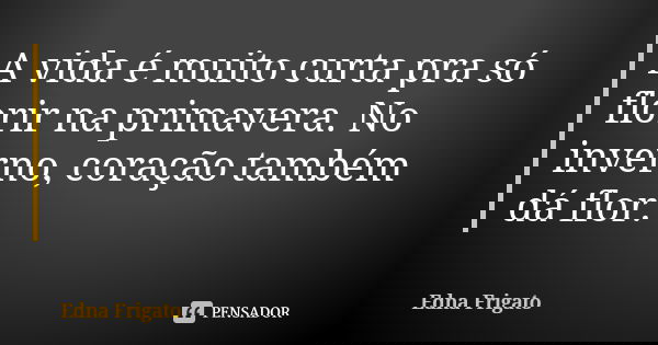 A vida é muito curta pra só florir na primavera. No inverno, coração também dá flor.