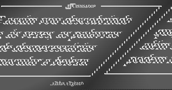 E assim vou descobrindo que, às vezes, as palavras além de desnecessárias podem macular a beleza.