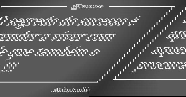 O segredo do sucesso é aprender a viver com aquele que também o procura !!!