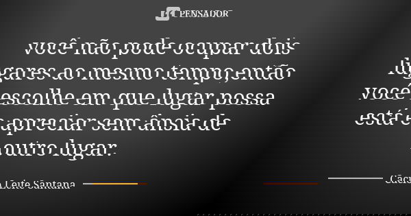 você não pode ocupar dois lugares ao mesmo tempo,então você escolhe em que lugar possa está e apreciar sem ânsia de outro lugar.