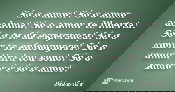 Só o amor ! Só o amor acalma! Só o amor te liberta! Só o te dá esperança! Só o amor te enlouquece! Só o amor tira teu sono! Só o amor e é só o amor!