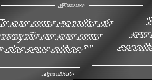 "Eu sou uma escolha do seu coração ou sou uma escolha dos seus olhos?"