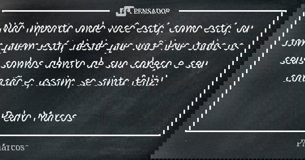 Não importa onde você está, como está, ou com quem está, desde que você leve todos os seus sonhos dentro de sua cabeça e seu coração e, assim, se sinta feliz! Pedro Marcos