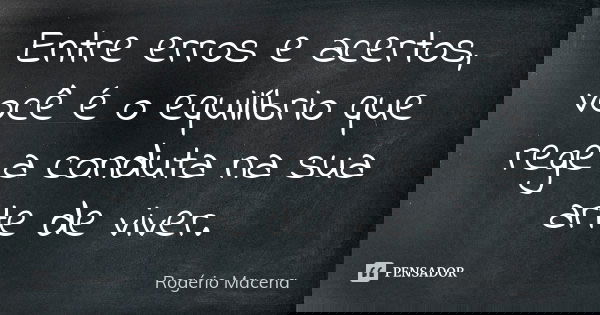 Entre erros e acertos, você é o equilíbrio que rege a conduta na sua arte de viver.