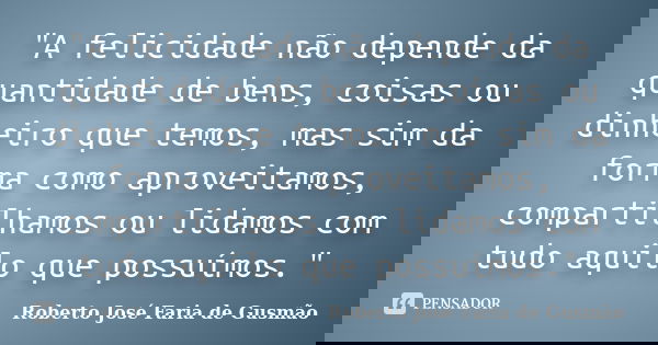 "A felicidade não depende da quantidade de bens, coisas ou dinheiro que temos, mas sim da forma como aproveitamos, compartilhamos ou lidamos com tudo aquilo que possuímos."
