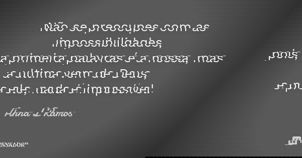 Não se preocupes com as impossibilidades, pois, a primeira palavras é a nossa, mas a ultima vem de Deus, e pra ele, nada é impossível.