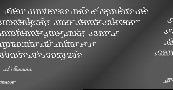 Meu universo não é repleto de constelação, mas tenta clarear o ambiente que pisa, com a lamparina da alma e o candeeiro do coração.