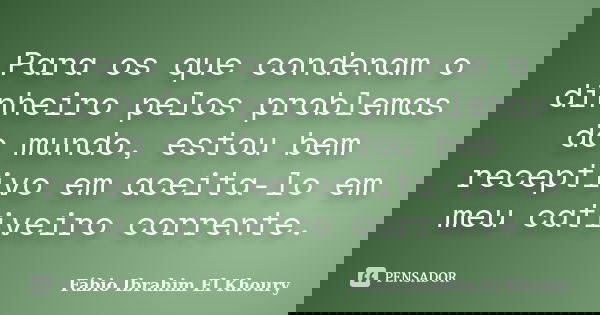 Para os que condenam o dinheiro pelos problemas do mundo, estou bem receptivo em aceita-lo em meu cativeiro corrente.