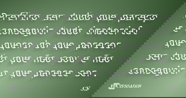 Prefiro ser tudo que pareço e conseguir tudo imaterial que quero do que parecer ser tudo que não sou e não conseguir o que parece ser.