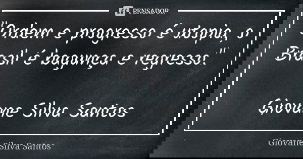 "Ordem e progresso é utopia, o Brasil é bagunça e regresso." Giovane Silva Santos