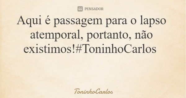 Aqui é passagem para o lapso atemporal, portanto, não existimos!#ToninhoCarlos