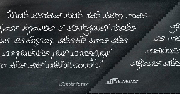 "Tudo estava indo tão bem, mas agi por impulso e estraguei todos os meus esforços, desfiz uma das maiores conquistas que consegui, depois disso fica até difícil sorrir".