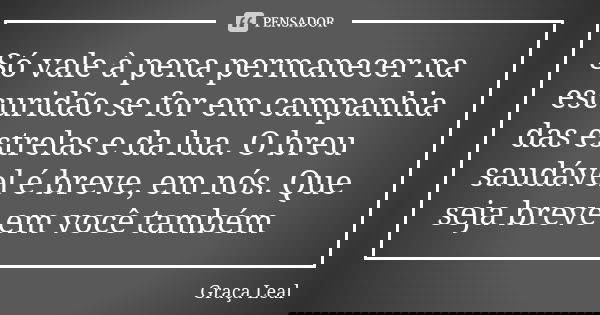 Só vale à pena permanecer na escuridão se for em campanhia das estrelas e da lua. O breu saudável é breve, em nós. Que seja breve em você também