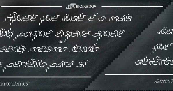 Aquele que ilude é o mais iludido, porque engana aquele que seria, mesmo tendo defeitos, perfeito para si