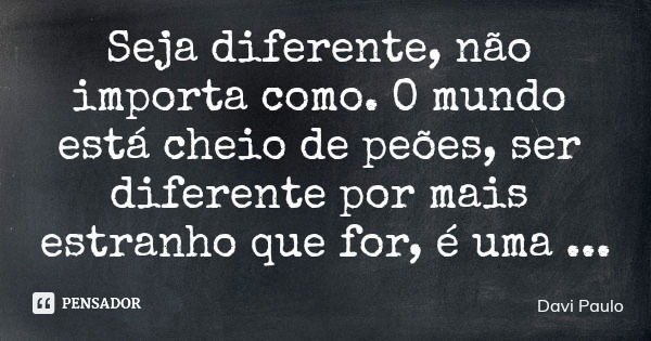 Seja diferente, não importa como. O mundo está cheio de peões, ser diferente por mais estranho que for, é uma benção.