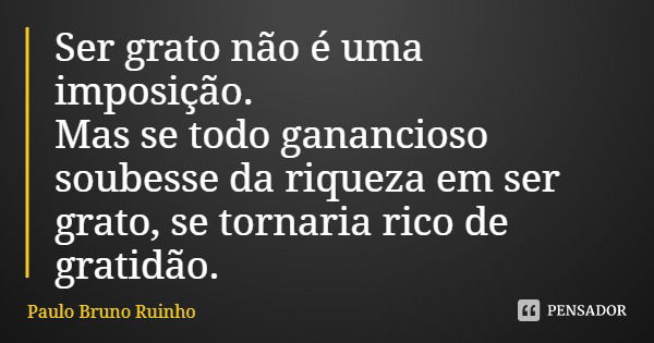 Ser grato não é uma imposição. Mas se todo ganancioso soubesse da riqueza em ser grato, se tornaria rico de gratidão.