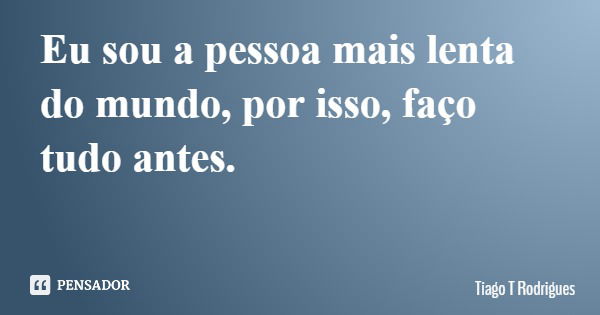 Eu sou a pessoa mais lenta do mundo, por isso, faço tudo antes.
