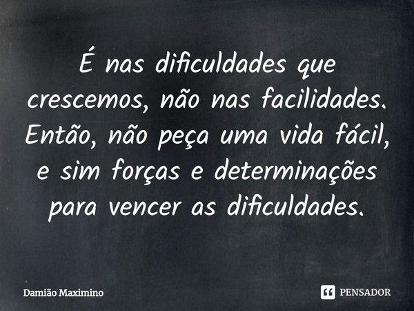 É nas dificuldades que crescemos, não nas facilidades. Então, não peça uma vida fácil, e sim forças e determinações para vencer as dificuldades.