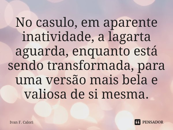 No casulo, em aparente inatividade, a lagarta aguarda, enquanto está sendo transformada, para uma versão mais bela e valiosa de si mesma.