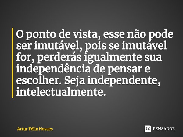 O ponto de vista, esse não pode ser imutável, pois se imutável for, perderás igualmente sua independência de pensar e escolher. Seja independente, intelectualmente.