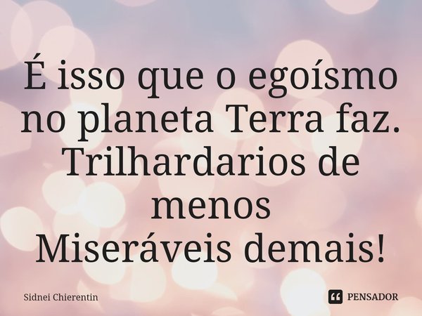 É isso que o egoísmo no planeta Terra faz. Trilhardarios de menos Miseráveis demais!
