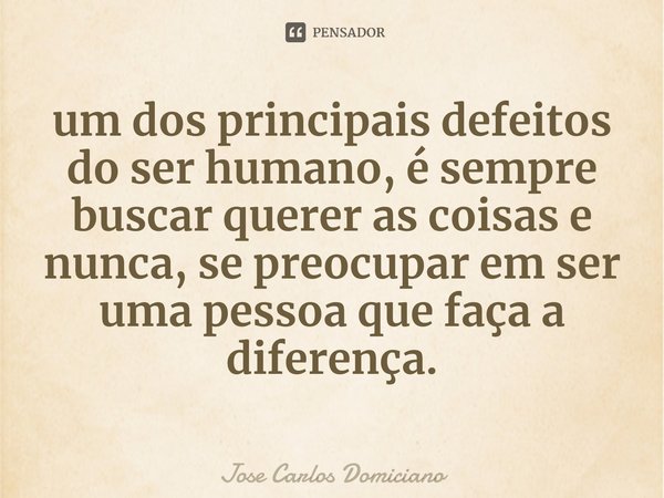 um dos principais defeitos do ser humano, é sempre buscar querer as coisas e nunca, se preocupar em ser uma pessoa que faça a diferença.