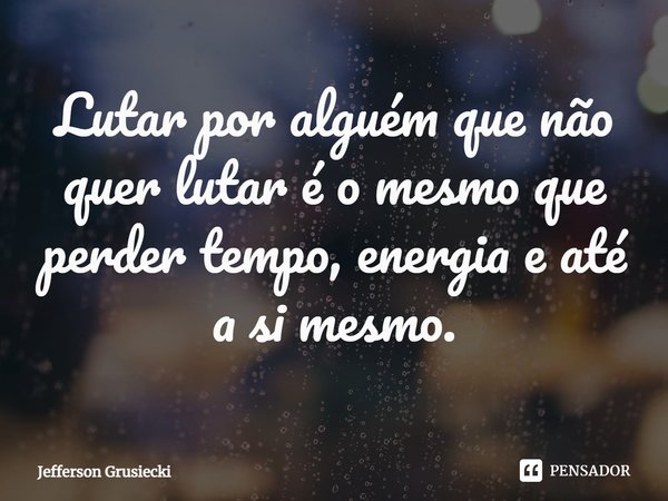 Lutar por alguém que não quer lutar é o mesmo que perder tempo, energia e até a si mesmo.