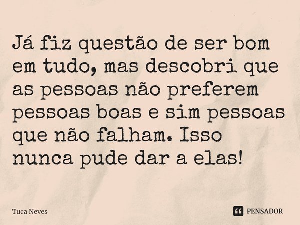 Já fiz questão de ser bom em tudo, mas descobri que as pessoas não preferem pessoas boas e sim pessoas que não falham. Isso nunca pude dar a elas!