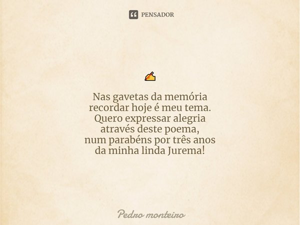 ✍️ Nas gavetas da memória recordar hoje é meu tema. Quero expressar alegria através deste poema, num parabéns por três anos da minha linda Jurema!
