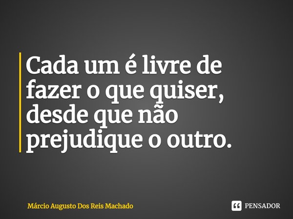 Cada um é livre de fazer o que quiser, desde que não prejudique o outro.