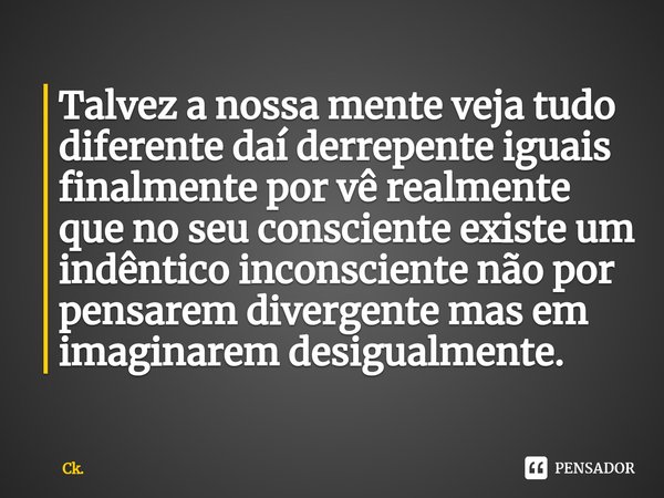 Talvez a nossa mente veja tudo diferente daí derrepente iguais finalmente por vê realmente que no seu consciente existe um indêntico inconsciente não por pensarem divergente mas em imaginarem desigualmente.