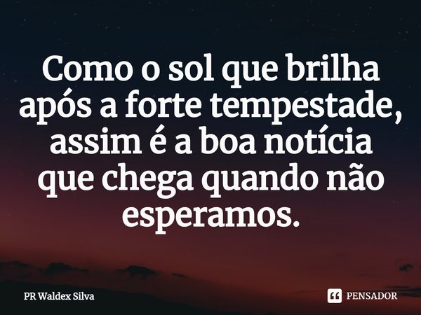 Como o sol que brilha após a forte tempestade, assim é a boa notícia que chega quando não esperamos.