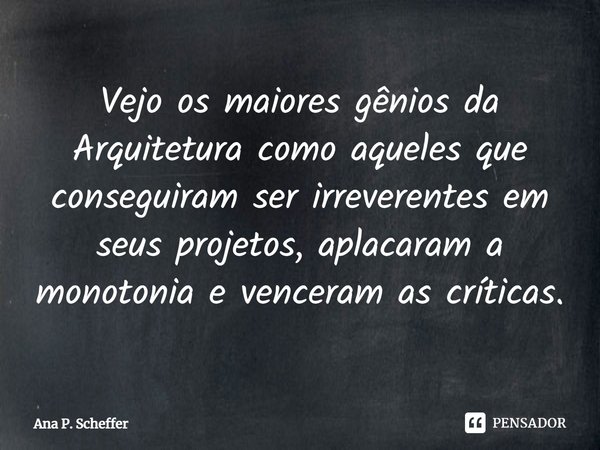 Vejo os maiores gênios da Arquitetura como aqueles que conseguiram ser irreverentes em seus projetos, aplacaram a monotonia e venceram as críticas.