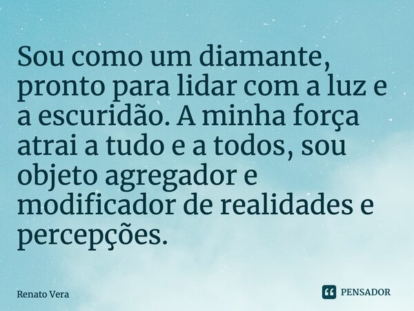 Sou como um diamante, pronto para lidar com a luz e a escuridão. A minha força atrai a tudo e a todos, sou objeto agregador e modificador de realidades e percepções.