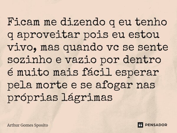 Ficam me dizendo q eu tenho q aproveitar pois eu estou vivo, mas quando vc se sente sozinho e vazio por dentro é muito mais fácil esperar pela morte e se afogar nas próprias lágrimas