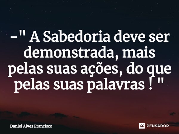 - " A Sabedoria deve ser demonstrada, mais pelas suas ações, do que pelas suas palavras ! "