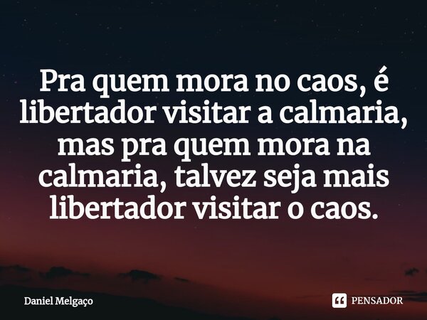 Pra quem mora no caos, é libertador visitar a calmaria, mas pra quem mora na calmaria, talvez seja mais libertador visitar o caos.